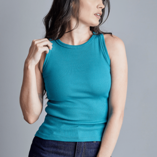 Regata Feminina em malha canelada de algodão ultra slim